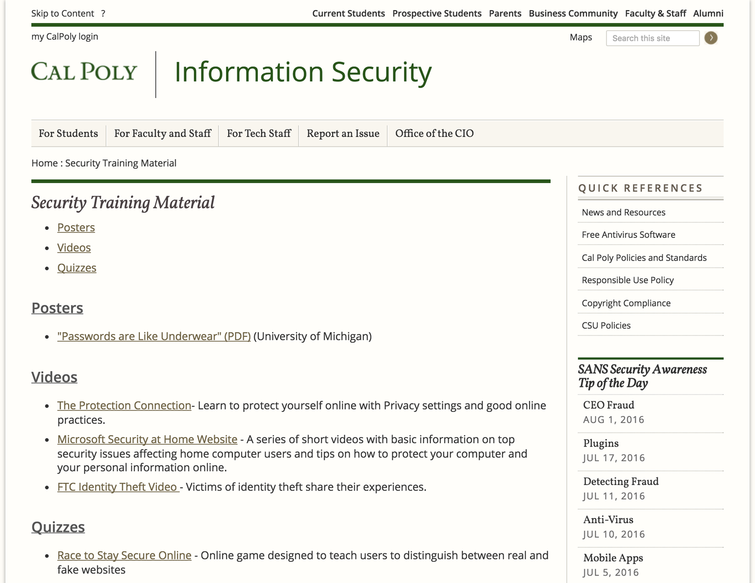 Cal Poly Information Security: Security Training Materials
