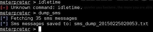 كنصيحة فقط مني يجب أن تتأكد من ان هاتف الضحية يعمل لانه غذا كان الهاتف لا يعمل فلا يمكنك أن تقوم بتنفيذ هذه العملة و لمعرفة أن الهاتف يعمل في الوقت الحالي, أدخل الأمر التالي : idletime