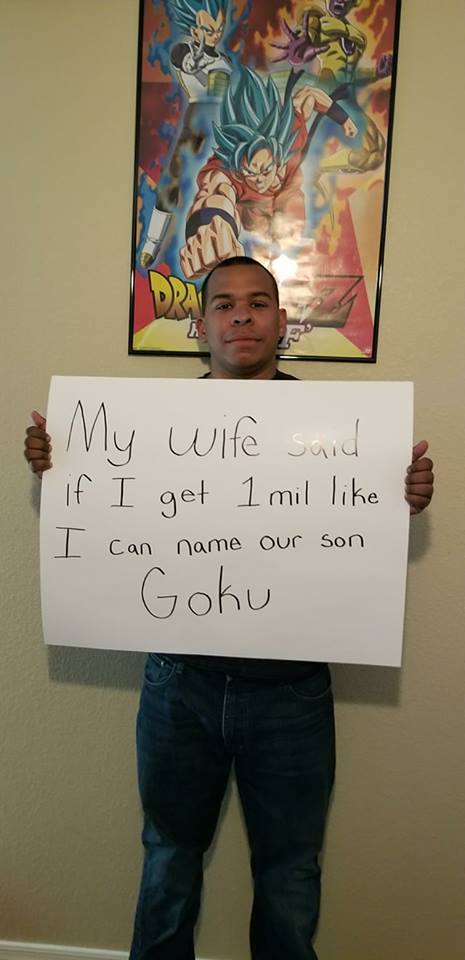 my wife said if i get 1 mil like i can name our son goku