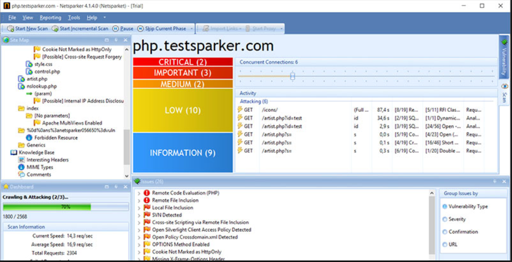 برنامج Netsparker الذي يقوم بفحص تطبيقات الوي و يجد عيوبا مثل حقن SQL و local file induction ، مما يشير إلى إجراءات تصحيحية بطريقة للقراءة فقط وآمنة. نظرًا لأن أداة الاختراق هذه تنتج دليلاً على الاستغلال ، فإنك لا تحتاج إلى التحقق من الثغرة الأمنية بنفسك. فقط في حالة تعذر التحقق من وجود خلل تلقائيًا ، فسيؤدي ذلك إلى تنبيهك. أداة الاختراق هذه سهلة للغاية للبدء. ما عليك سوى إدخال عنوان URL والسماح له بإجراء فحص. يدعم Netsparker تطبيقات JavaScript و AJAX. لذلك ، لا تحتاج إلى ضبط اعدادات الفحص أو الاعتماد على بعض إعدادات الفحص المعقدة لفحص أنواع مختلفة من تطبيقات الويب.