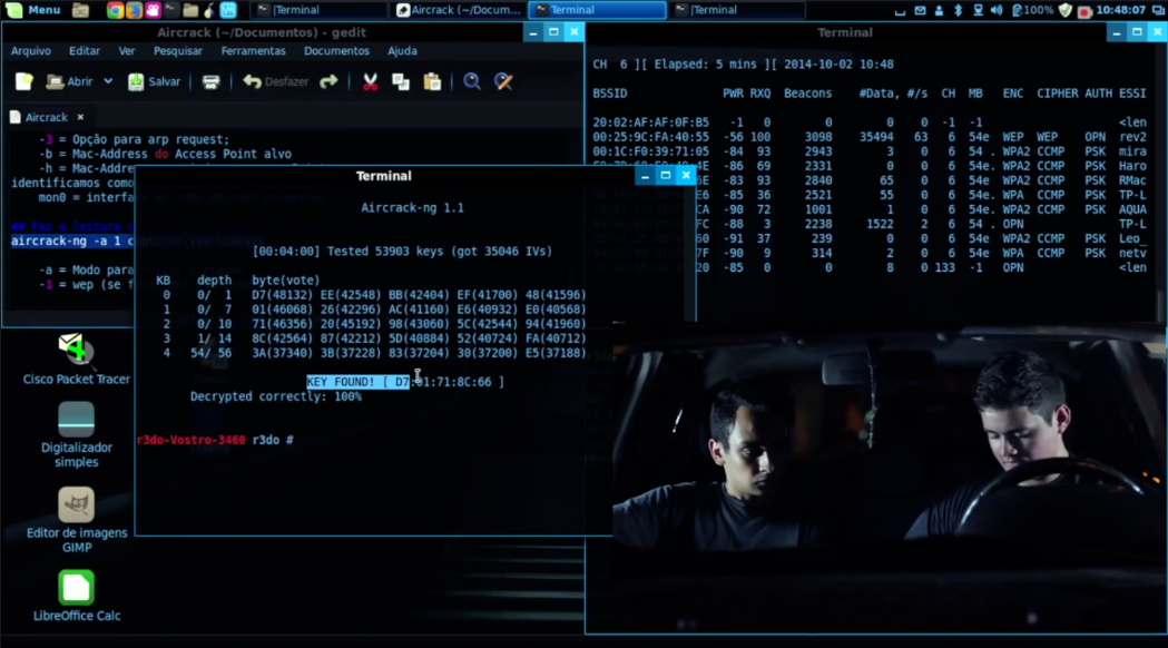 باستخدام برنامج الهكر Aircrack-ng ، يمكنك التقاط الحزم ، تصدير البيانات إلى ملفات نصية ، تنفيذ هجمات مختلفة ، التحقق من بطاقات WiFi و ، تكسير WEP و WPA PSK ، إلخ. و ان كنت مهتم بإحتراق الواي فاي , فيمكنك الإطلاع على موضوع اختراق شَبَكَاتٌ الويفي “Wi-Fi” بنظام كالي لينكس.