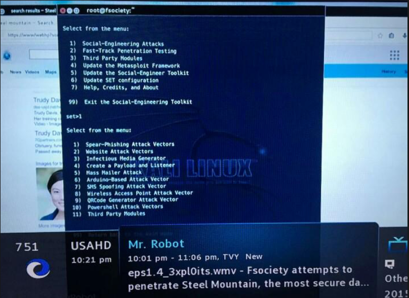 ضهرت هذه الأداة في مسلسل Mr. Robot ، اداة Social-Engineer Toolkit لـ TrustedSec هي إطار متقدم لمحاكاة أنواع متعددة من هجمات الهندسة الاجتماعية مثل credential harvestings ، وهجمات التصيد الاحتيالي ، وأكثر من ذلك. في عرض الأداة في مسلسل السيد روبوت ، يستخدم إليوت أداة SMS spoofing من مجموعة أدوات Social-Engineer Toolkit.