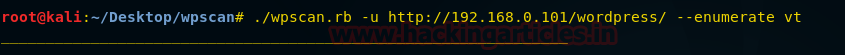 ./wpscan.rb –u http://192.168.0.101/wordpress/–enumerate vt
