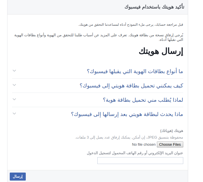 كل ما عليك فعله هو إرفاق الهوية و وضع رقم الهاتف أو البريد الإلكتروني للحساب المعطل