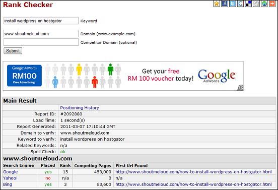 يمكنك عن طريق ادخال رابط موقعك او رابط اي موضوع و سيعرض لك الكلمة المفتاحية التي على الرابط و ب اختيار الكلمة المفتاحية ب امكانك ان ترى المنافسة عليها و غيرها من التفاصيل .