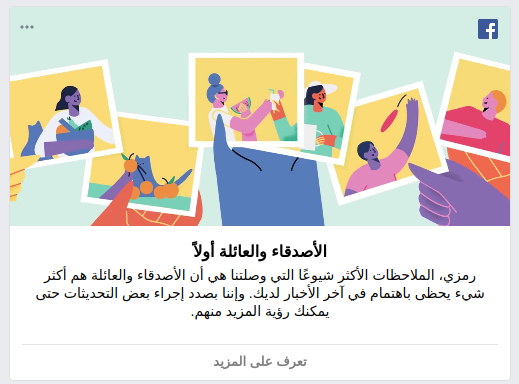 شركة الفيسبوك تقرر تحديث خورزمياتها فيما يتعلق ب المنشورات التي سوف تضهر لأكثر من 2 مليار مستخدم, حيث أنه خلال الأسابيع القادمة لن تظهر لك منشورات الصفحات الإخبارية التي تتابعها.على مدار الأسابيع القليلة القادمة، سيبدأ المستخدمون في رؤية عدد أقل من مقاطع الفيديو  الإخبارية التي تشاركها شركات الإعلام, و سوف تضهر لك منشورات الأصدقاء و العائلة بدلا من ذالك .