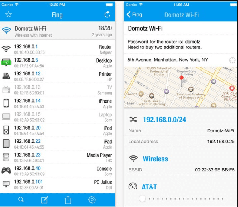 iNet هو أفضل تطبيق iOS يمكنك في استكشاف شبكة WiFi الخاصة بك. و الشيء الرائع في برنامج iNet هو أنه يساعدك على معرفة الأجهزة المتصلة بشبكة الواي فاي.أعرف انه يشبه تطبيق Fing الذي ذكرناه فيما سبق . لكن التطبيق يساعدك أيضًا على معرفة ما إذا كانت المنافذ (البورتات) متاحة للاتصال أم لا.