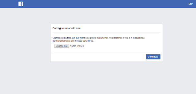 و سوف يطلب منك ان تقوم ب رفع صورة لك ك العادة 🙁 و يكون عنوان الصفحة Carregue uma foto sua و النص الموجود ب الاسفل ك التالي :
