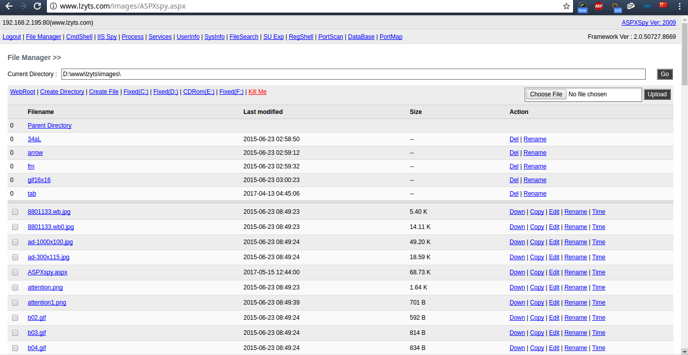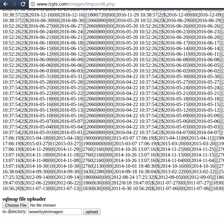 the backdoor has been successfully uploaded on ‘/www/lzyts/images/’ – http://www.lzyts.com:80/images/tmpbjaml.php