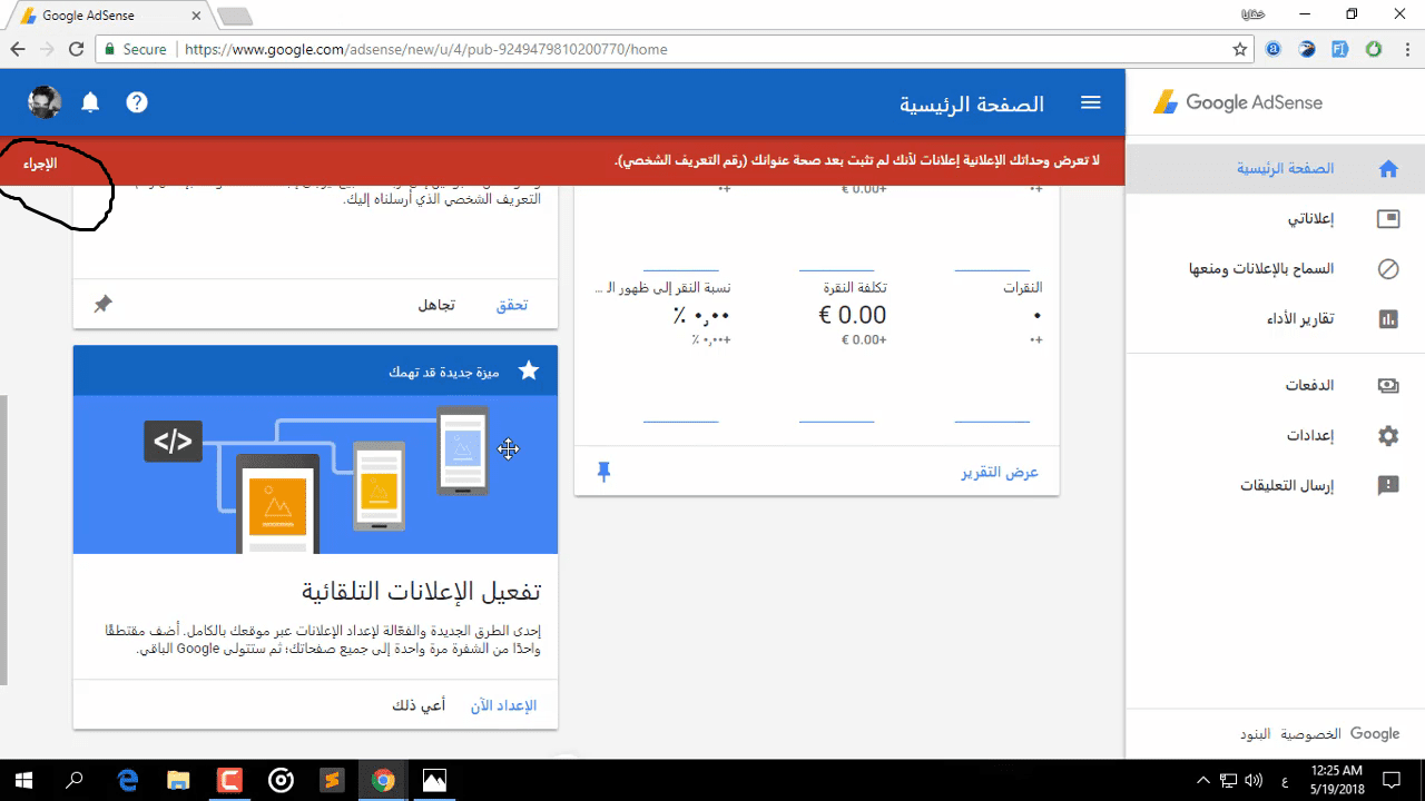 لا تعرض وحداتك الإعلانية إعلانات لأنك لم تثبت بعد صحة عنوانك (رقم التعريف الشخصي).