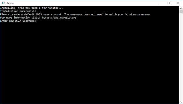في المرة الأولى التي تقوم فيها بتثبيت  Windows Subsystem for Linux، ستتم مطالبتك بإنشاء اسم مستخدم وكلمة مرور يونيكس.