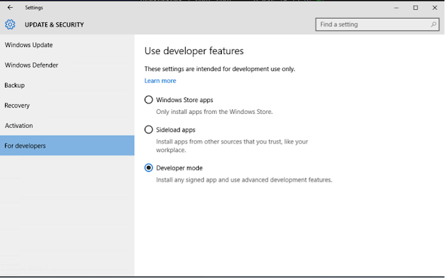 Open Settings -> Update and Security -> For developers