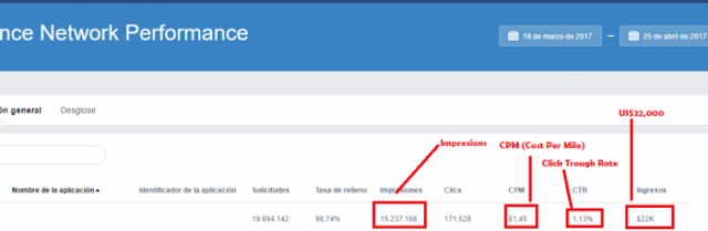 شبكة جمهور فاسيبوك أو المعروفة ب Audience Network هي شبكة لعرض الاعلانات و الربح من خلالها و تدفع مقابل التكلفة الفعلية لكل ألف ظهور استنادا إلى البلدان وكذلك حجم الزيارات التي يحصل عليها كل ناشر، ولكن يمكنني بالتأكيد أن أخبرك بأن Audience Network تدفع أكثر من أي شبكة أخرى مقابل التكلفة لكل ألف ظهور . هنا التقاط صورة من تقرير الأداء حتى تتمكن من معرفة ما أتحدث عنه.