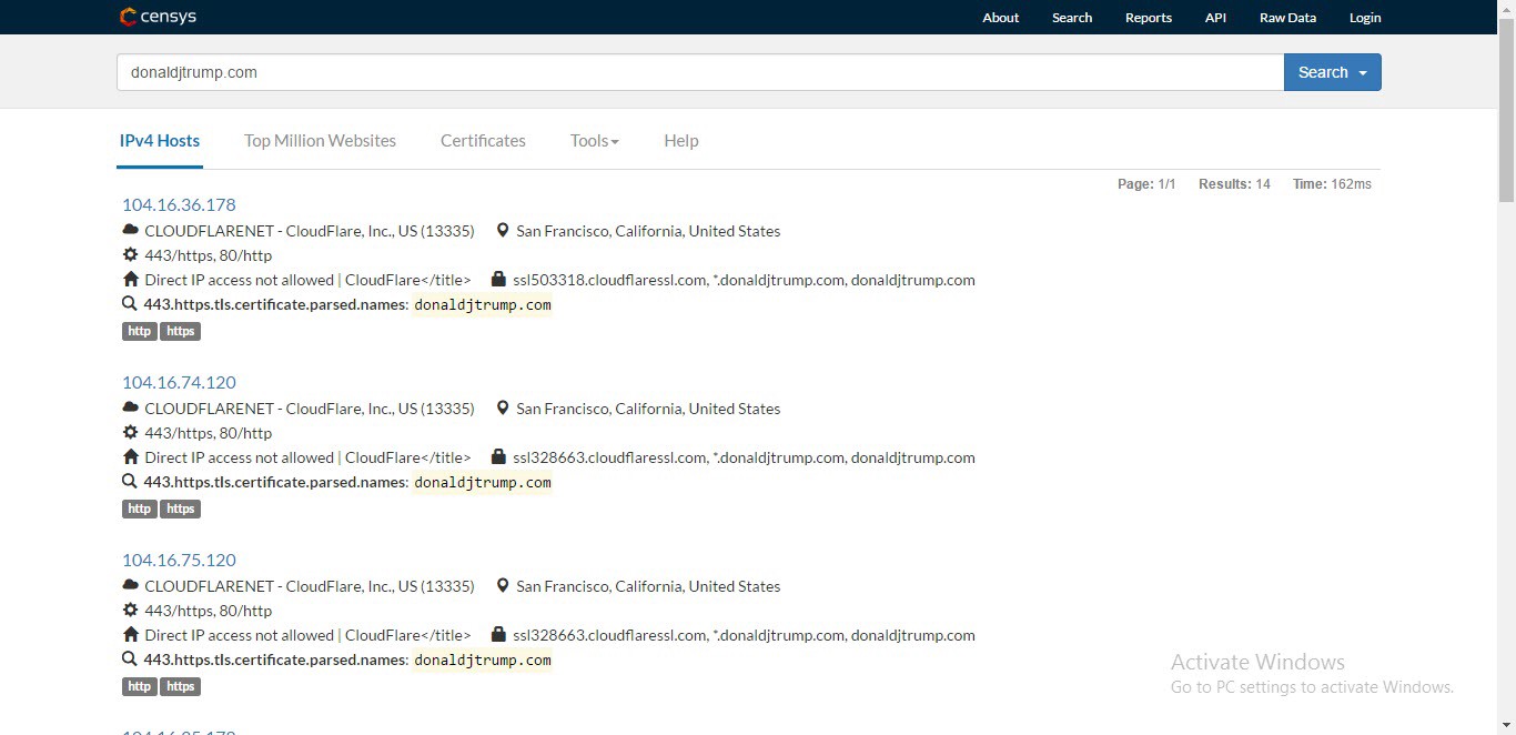 كما نشاهد في هده الصورة الايبي الاحقيقي للسيرف و تم تخطي CloudFlare